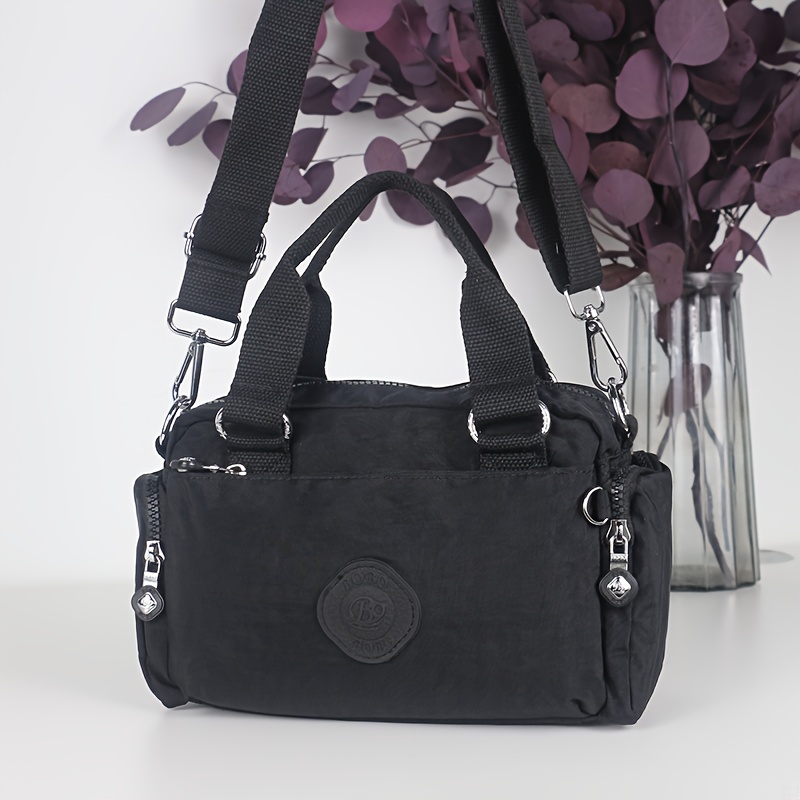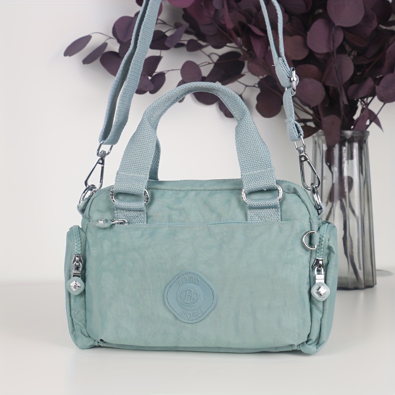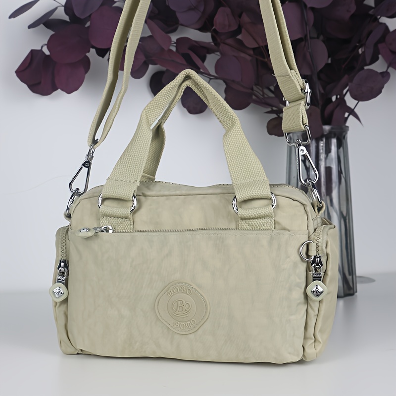 BO Women's Korean- Inspired Multi-Pocket Crossbody Bag - Lightweight Nylon Messenger Purse with Adjustable Wide Strap, Golden-Tone Hardware & Korean Brand Logo-Like Emblem, Mustard Yellow/Dark Blue/ Grey/Navy, School, Travel,