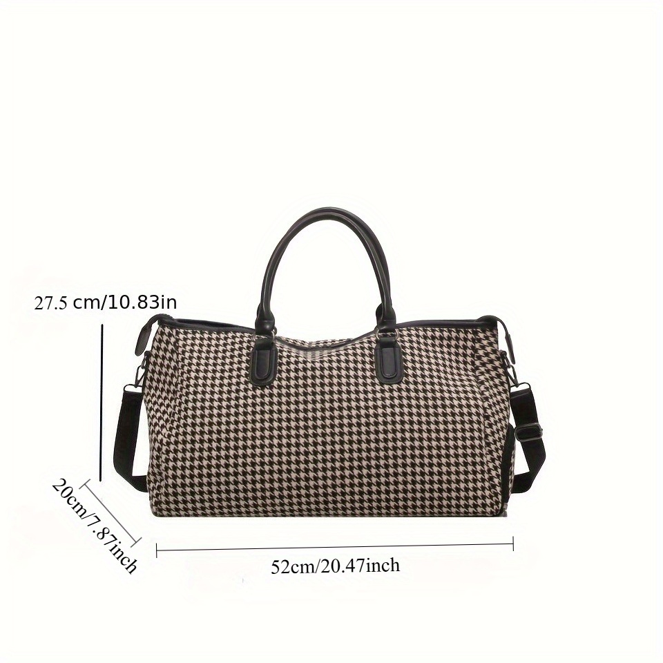 Large Capacity Houndstooth Pattern Sports Bag, Versatile Travel Luggage Handbag, Trendy Overnight Bag