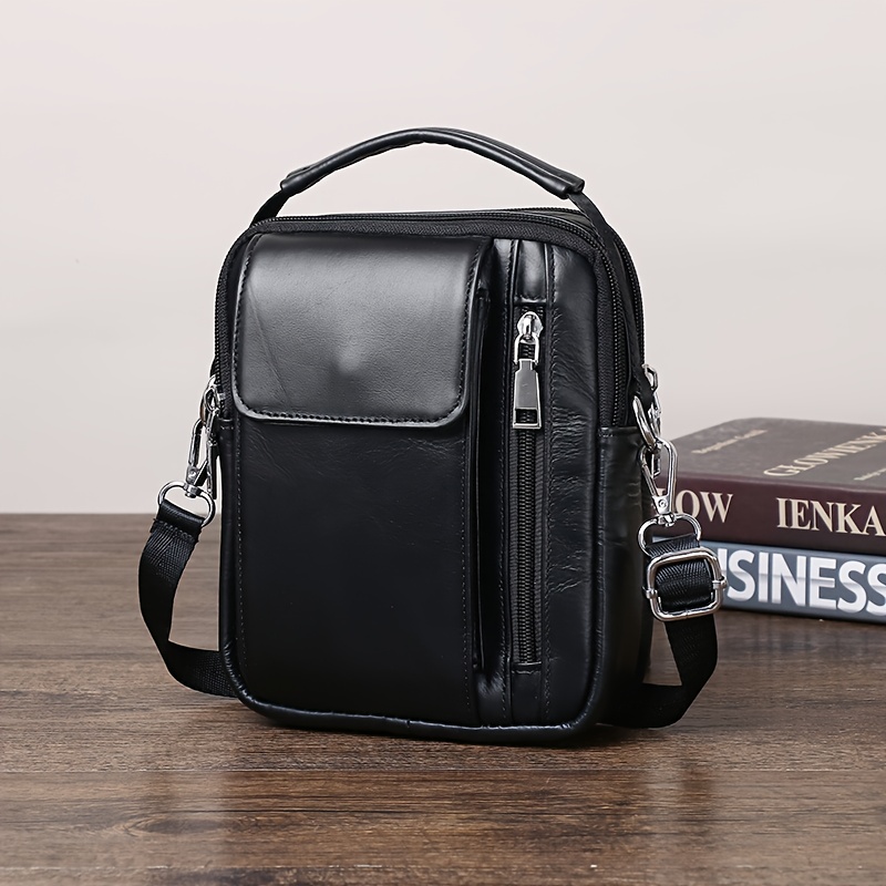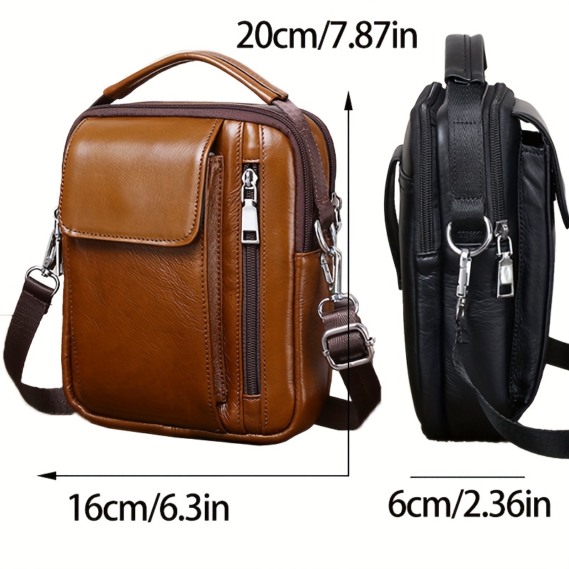 Men'S Genuine Leather Crossbody Bag - Adjustable Strap, Multiple Compartments, Zipper Closure, Black & Brown Options, Perfect for Everyday Use, Secure Travel Bag |