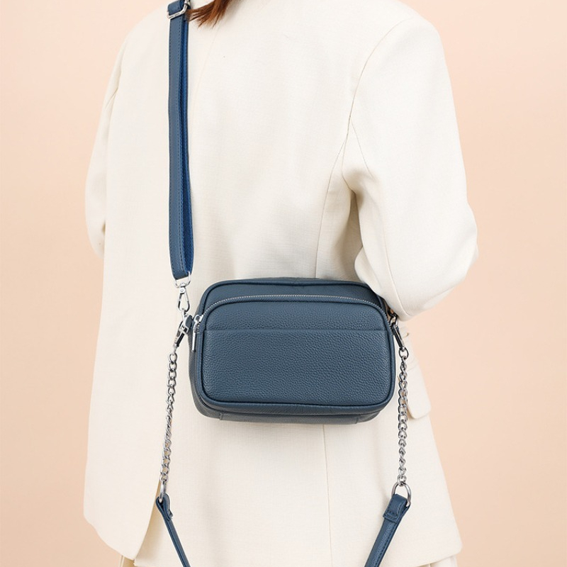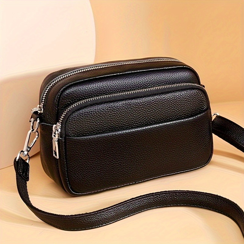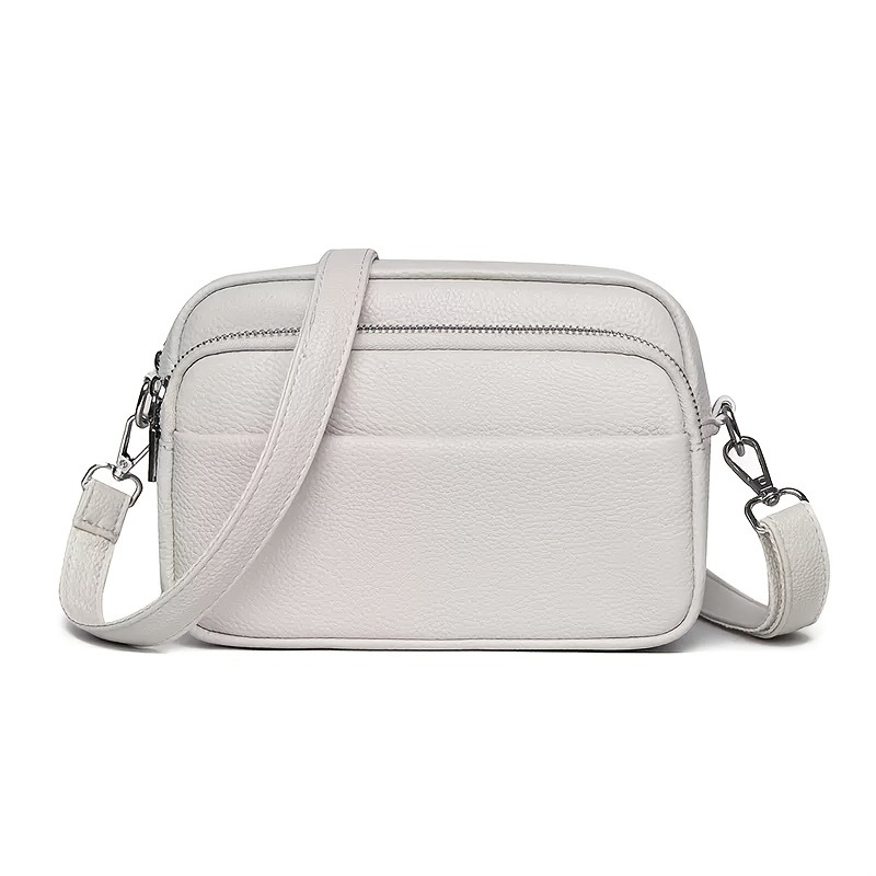 Women'S Genuine Leather Crossbody Bag - Large Capacity Retro Square Handbag with Detachable Strap, Golden-Tone Hardware & Zipper Closure, Elegant White/Black/Coffee/Green/Blue