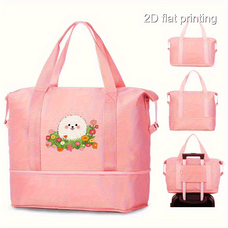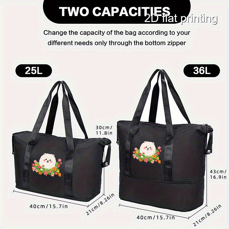 1pc Men's Stylish Large Capacity Yoga Gym Tote Bag with Pomeranian & Floral Design, Wet/Dry Separation, Black Fabric Handbag for Daily Use & Fitness