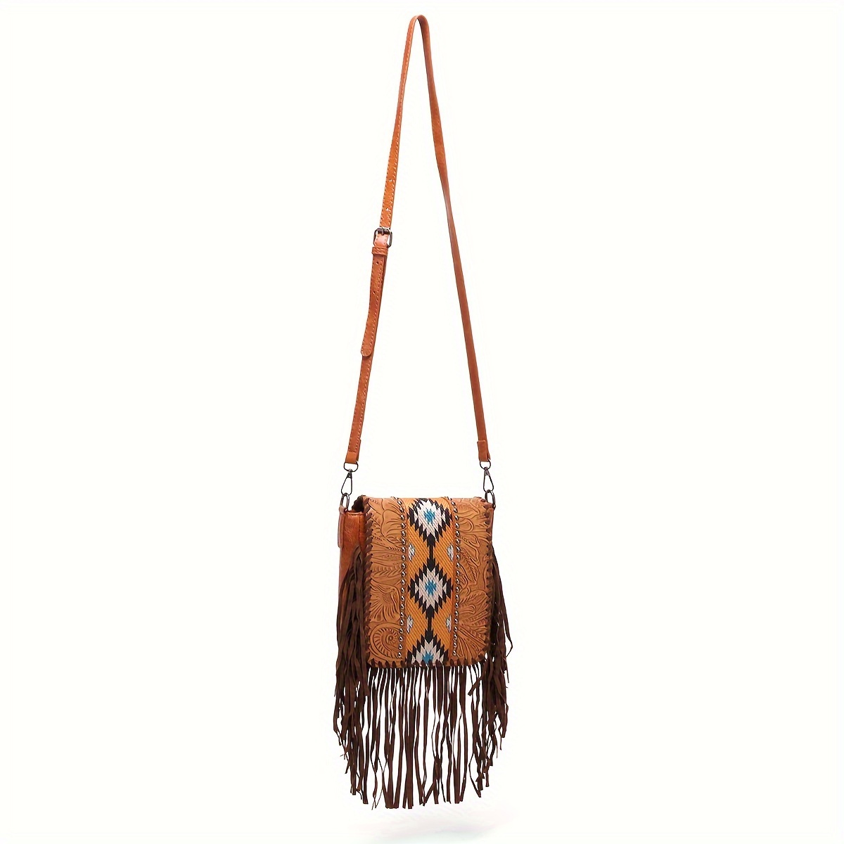 Perfect Casual Vintage Bohemian Style Rivet Crossbody Bag with Tassel Decor, Stitching, Phone Lipstick Coin Compartments for Daily Use, Best Gifts for Carnaval