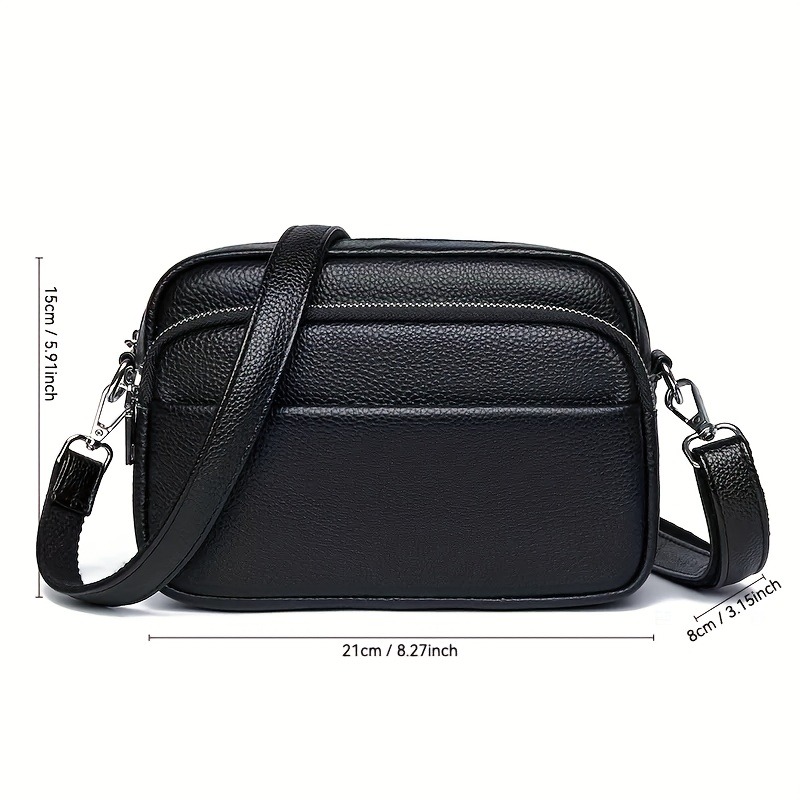 Women'S Genuine Leather Crossbody Bag - Large Capacity Retro Square Handbag with Detachable Strap, Golden-Tone Hardware & Zipper Closure, Elegant White/Black/Coffee/Green/Blue